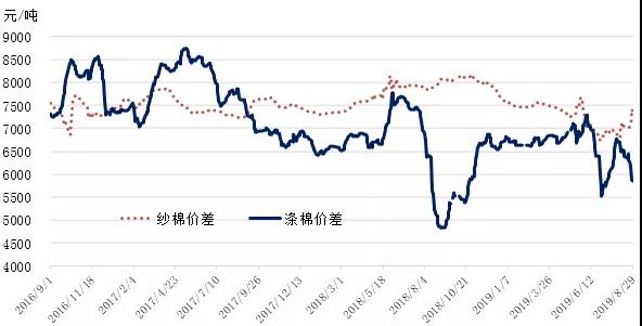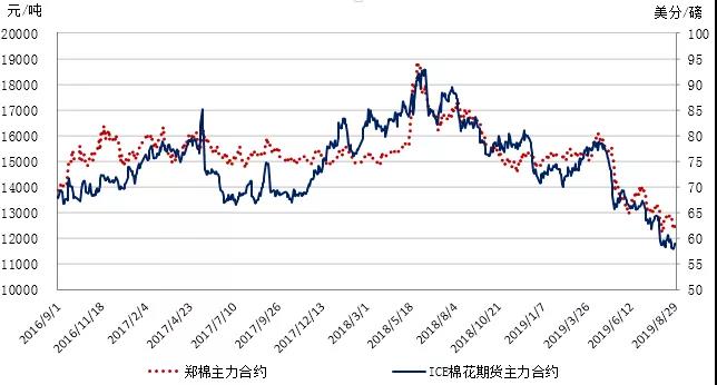 國內(nèi)棉價弱勢運行。據(jù)國家統(tǒng)計局數(shù)據(jù)顯示,8月中國制造業(yè)PMI為49.5%比上月小幅回落0.2個百分點,新訂單指數(shù)49.7%,比上月下降0.1個百分點,進口訂單指數(shù)由7月的47.6下降至46.7,表明制造業(yè)受內(nèi)需減弱影響明顯。搶出口因素推動新出口訂單指數(shù)從7月的46.9%回升至47.2%,但仍處收縮區(qū)間,外需增長仍面臨一定壓力。國內(nèi)棉花市場方面,據(jù)國家棉花市場監(jiān)測系統(tǒng)數(shù)據(jù)顯示,截至2019年8月30日2018/19年度國內(nèi)棉花銷售506.2萬噸(指從加工企業(yè)第1次銷售),按照產(chǎn)量610.5萬噸測算,尚有98.3萬噸待售。鄭棉倉單數(shù)量較上周減少0.8萬噸至47.2萬噸,較上年同期多1.7萬噸,隨著9月中旬交割期臨近,部分倉單棉將流入現(xiàn)貨增加供應(yīng)。目前籽棉開始零星采摘,預(yù)計9月以后新花采摘收購逐漸展開,據(jù)調(diào)查,預(yù)計今年新疆地區(qū)開秤價3.1-3.5元/斤、內(nèi)地2.5-3.0元/斤,明顯低于去年。隨著新棉即將上市,陳棉銷售壓力增加,新疆皮棉低價甩貨仍不暢銷,本周儲備棉成交率也大幅回落,現(xiàn)貨采購意向嚴重不足。下游雖已到“傳統(tǒng)旺季”,詢價增多,但實際成交較少,訂單無明顯回暖,棉紗讓利出貨。坯布庫存較高,降價銷售不斷。中美貿(mào)易摩擦不斷升級,消費不及預(yù)期,新花上市供應(yīng)壓力將至,國內(nèi)棉價可能繼續(xù)弱勢運行。近期關(guān)注中美貿(mào)易形勢、收獲期棉區(qū)天氣變化、籽棉收購價風向。