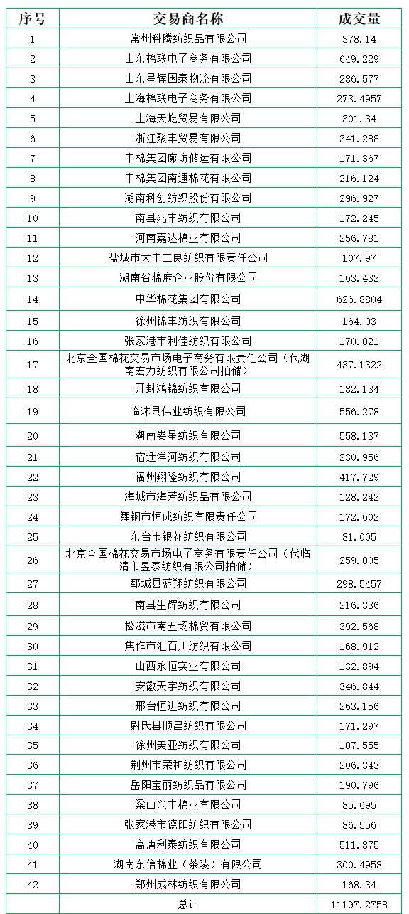 新疆棉成交均價(jià)11885元/噸,新疆棉折3128價(jià)格13208元/噸,新疆棉加價(jià)幅度873元/噸。