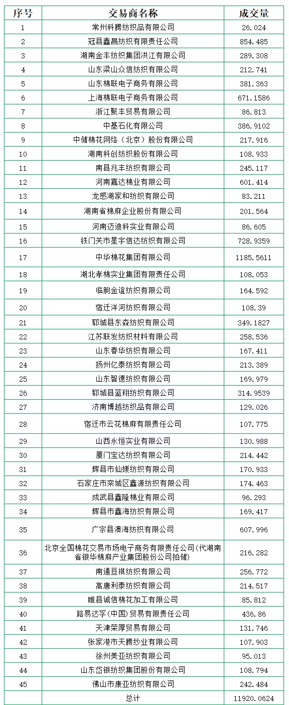 9月6日儲(chǔ)備棉輪出銷(xiāo)售資源11920.0624噸,實(shí)際成交11920.0624噸,成交率100%,成交均價(jià)11973元/噸,較5日上漲203元/噸;折3128價(jià)格13306元/噸,較5日上漲261元/噸。