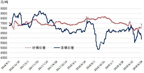 國(guó)際棉價(jià)謹(jǐn)慎為主。美國(guó)8月制造業(yè)活動(dòng)3年來首次出現(xiàn)萎縮,零售業(yè)就業(yè)崗位連續(xù)第7個(gè)月下滑,歐元區(qū)PMI連續(xù)7個(gè)月低于枯萎線,貿(mào)易緊張局勢(shì)和英國(guó)脫歐不確定性將繼續(xù)拖累實(shí)體經(jīng)經(jīng)濟(jì)陷入衰弱。國(guó)際棉花方面,國(guó)際棉花咨詢委員會(huì)(ICAC)9月報(bào)告預(yù)測(cè),2019/20年度全球產(chǎn)量2689萬噸,同比增長(zhǎng)4.5%,消費(fèi)量2666萬噸,同比增長(zhǎng)1.2%,產(chǎn)大于需23萬噸。目前北半球新棉生長(zhǎng)良好,部分產(chǎn)區(qū)少量上市。截止9月1日,美棉吐絮率36%,生長(zhǎng)狀況良好以上的48%,同比分別增加7個(gè)、8個(gè)百分點(diǎn);巴基斯坦軋花廠協(xié)會(huì)統(tǒng)計(jì),截止9月1日,巴基斯坦2019/20年度新棉上市量達(dá)23.05萬噸,銷售量14.7萬噸;印度官方數(shù)據(jù)顯示,截止8月下旬,印度植棉面積達(dá)到1220萬公頃,同比增長(zhǎng)6%,受MSP最低收購(gòu)支持,目前印度棉種植進(jìn)度良好,中部、北部、南部種植進(jìn)度同比分別增長(zhǎng)3%、19%、5%;南半球巴西產(chǎn)量繼續(xù)看增,美國(guó)農(nóng)業(yè)參贊預(yù)計(jì)2019/20年度巴西棉產(chǎn)量和出口量將分別達(dá)272萬噸和185萬噸,同比分別增長(zhǎng)1.6%和44%。國(guó)際棉花消費(fèi)方面,棉紗毀約頻繁,庫(kù)存高企。印度棉紗受困于印度棉價(jià)高企困擾,出口需求低迷,7月印度棉紗對(duì)中國(guó)出口額同比下降80%。近期人民幣貶值,中國(guó)對(duì)巴基斯坦棉紗進(jìn)口有所減少。中美貿(mào)易局勢(shì)持續(xù)不定,打壓棉花需求前景,棉紗銷售可能進(jìn)一步受限,疊加新棉即將上市,國(guó)際棉價(jià)整體承壓,9月ICAC將2019/20年度CotlookA年度平均指數(shù)下調(diào)2美分/磅至79美分/磅。近期需持續(xù)關(guān)注中美貿(mào)易談判和美國(guó)颶風(fēng)走向,可能引起市場(chǎng)波動(dòng)。