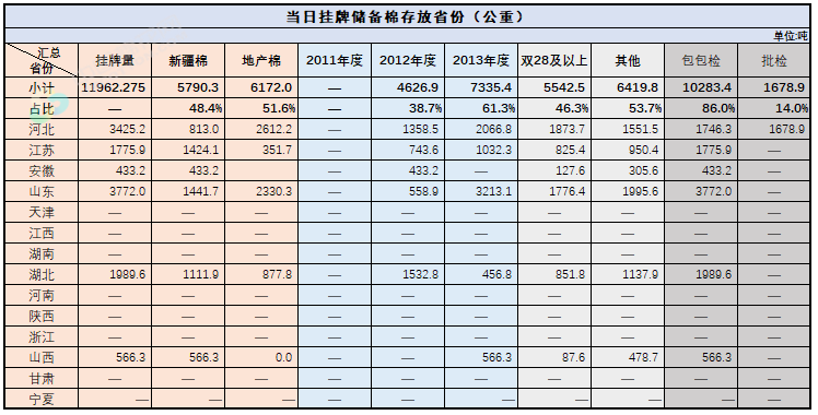 2.當(dāng)日輪出上市儲備棉中有部分為分批抽樣公檢。抽樣比率及抽樣方法按照棉花國家標(biāo)準(zhǔn)規(guī)定,品質(zhì)指標(biāo)包括顏色級、軋工質(zhì)量、長度、馬克隆值、斷裂比強度、長度整齊度指標(biāo);重量采用原入庫公檢結(jié)果,不再重新檢驗。