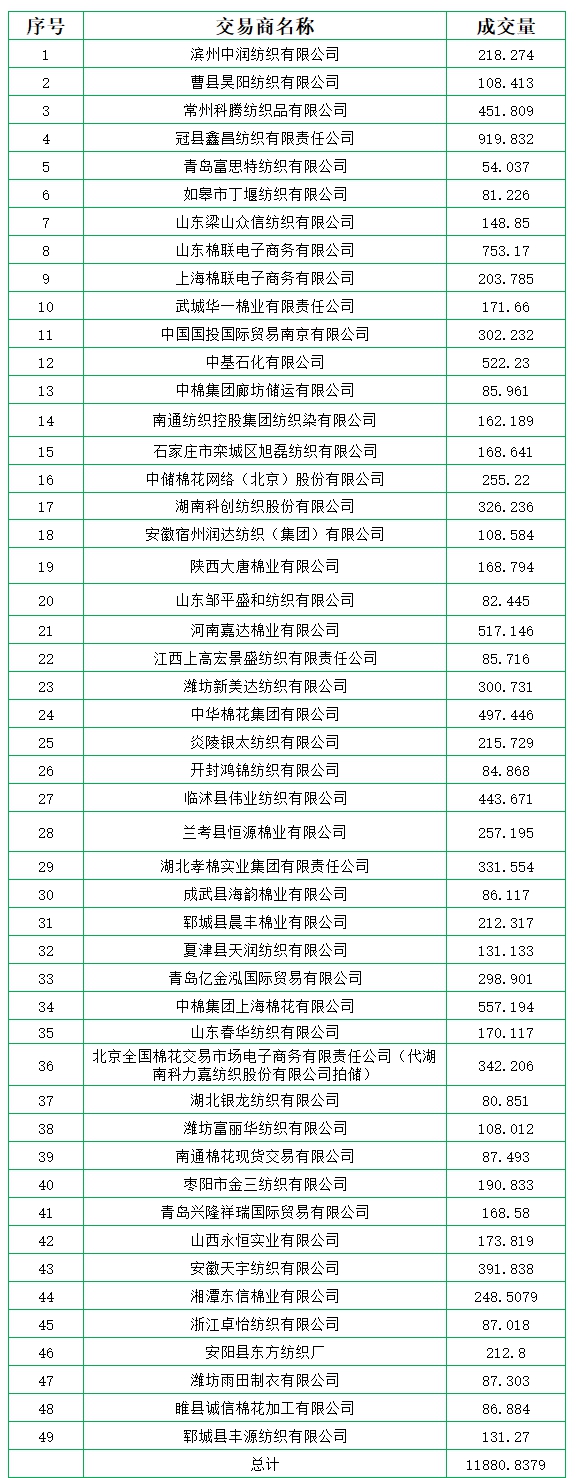 9月10日儲備棉輪出銷售資源11962.2749噸,實際成交11880.8379噸,成交率99.32%,成交均價11971元/噸,較9日上漲74元/噸;折3128價格13204元/噸,較9日下跌10元/噸。