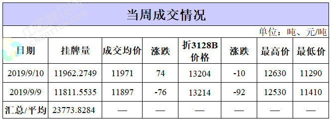 截至9月10日累計輪出銷售資源99.95萬噸,成交最高價15930元/噸,成交最低價10750元/噸。