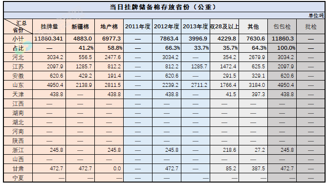 中國(guó)儲(chǔ)備棉管理有限公司定于9月12日上市銷售儲(chǔ)備棉重量11860.341噸,共65捆。