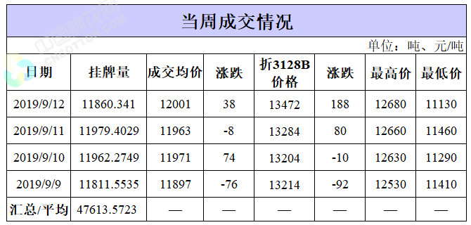 截至9月12日累計(jì)輪出銷售資源102.34萬噸,成交最高價(jià)15930元/噸,成交最低價(jià)10750元/噸。