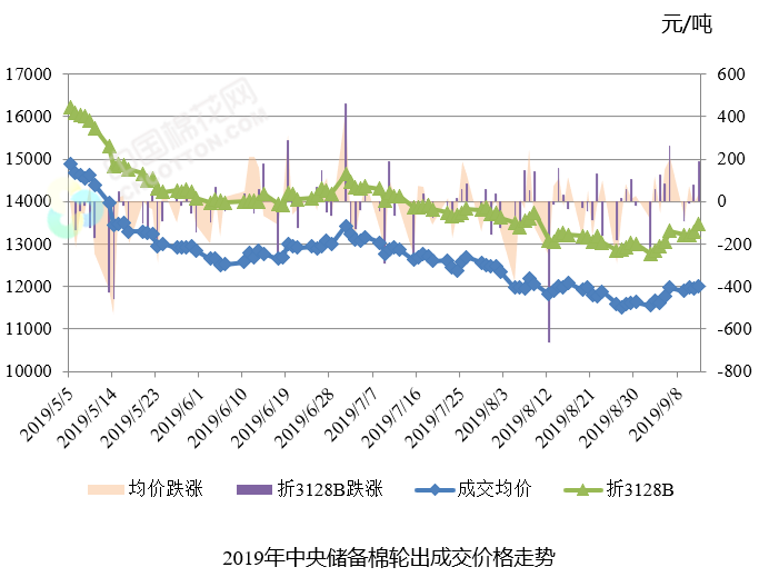 上周(2019年9月9-12日)是2019年中央儲(chǔ)備棉輪出第十九周,中國(guó)儲(chǔ)備棉管理有限公司掛牌銷售中央儲(chǔ)備棉4.76萬(wàn)噸,其中新疆棉2.21萬(wàn)噸,地產(chǎn)棉2.55萬(wàn)噸。從2019年5月5日中央儲(chǔ)備棉開始輪出至9月12日,中國(guó)儲(chǔ)備棉管理有限公司累計(jì)掛牌銷售中央儲(chǔ)備棉102.34萬(wàn)噸,其中新疆棉51.75萬(wàn)噸,地產(chǎn)棉50.59萬(wàn)噸。