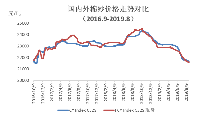 二、內(nèi)外棉紗價(jià)格均下跌