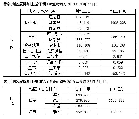 加工企業(yè)收購謹(jǐn)慎,收購價環(huán)比略有上漲,截止到9月22日新疆累計加工量3236.925噸、內(nèi)地2056.146噸,其中山東1103.311噸、江蘇952.835噸。