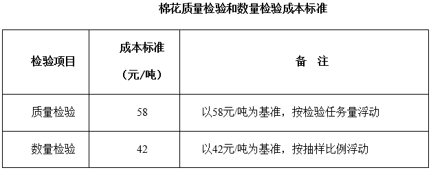 棉花質(zhì)量檢驗(yàn)和數(shù)量檢驗(yàn)成本標(biāo)準(zhǔn)根據(jù)專業(yè)纖維檢驗(yàn)機(jī)構(gòu)的檢驗(yàn)任務(wù)量和抽樣比例確定。