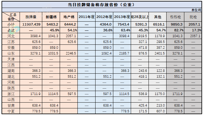 2.當(dāng)日輪出上市儲備棉中有部分為分批抽樣公檢。抽樣比率及抽樣方法按照棉花國家標(biāo)準規(guī)定,品質(zhì)指標(biāo)包括顏色級、軋工質(zhì)量、長度、馬克隆值、斷裂比強度、長度整齊度指標(biāo);重量采用原入庫公檢結(jié)果,不再重新檢驗。