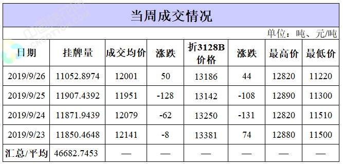 截至9月26日累計(jì)輪出銷售資源112.91萬噸,成交最高價(jià)15930元/噸,成交最低價(jià)10750元/噸。