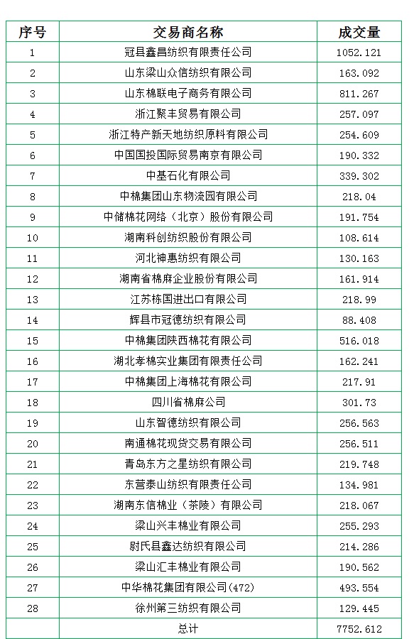 新疆棉成交均價(jià)12345元/噸,新疆棉折3128價(jià)格13341元/噸,新疆棉加價(jià)幅度621元/噸。