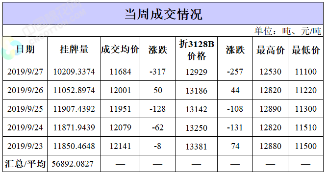 截至9月27日累計輪出銷售資源113.93萬噸,成交最高價15930元/噸,成交最低價10750元/噸。