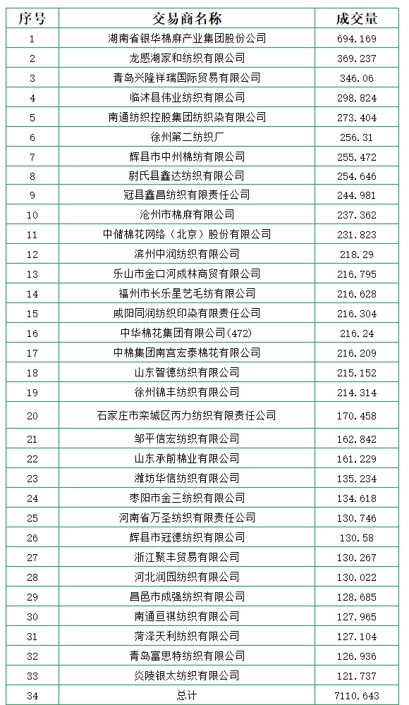 新疆棉成交均價11893元/噸,新疆棉折3128價格13174元/噸,新疆棉加價幅度592元/噸。