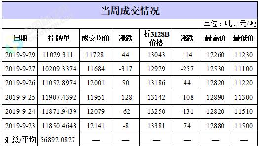 截至9月29日累計輪出銷售資源115萬噸,成交最高價15930元/噸,成交最低價11060元/噸。