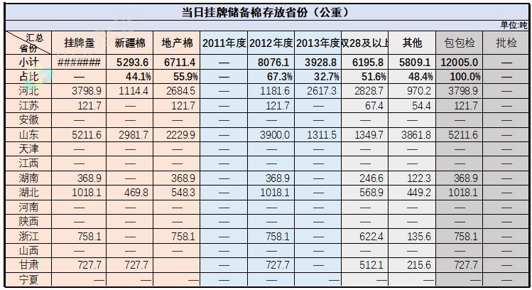 2.當(dāng)日輪出上市儲備棉中有部分為分批抽樣公檢。抽樣比率及抽樣方法按照棉花國家標(biāo)準(zhǔn)規(guī)定,品質(zhì)指標(biāo)包括顏色級、軋工質(zhì)量、長度、馬克隆值、斷裂比強(qiáng)度、長度整齊度指標(biāo);重量采用原入庫公檢結(jié)果,不再重新檢驗。