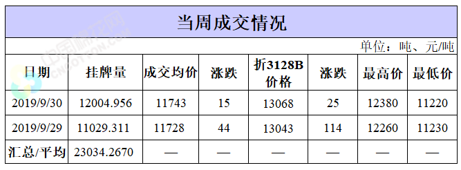 截至9月30日累計(jì)輪出銷售資源116.23萬(wàn)噸,成交最高價(jià)15930元/噸,成交最低價(jià)10750元/噸。