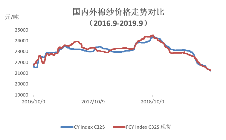 本月紗線銷售雖有所好轉,但價格仍低迷。據(jù)調查,國產32支純棉紗9月均價21147元/噸,較上月下降237元/噸,跌幅1.1%,較去年同期下跌3155元/噸,跌幅13%;進口32支純棉紗月均價21219元/噸,較上月下跌166元/噸,跌幅0.78%,較去年同期下跌3104元/噸,跌幅12.8%。