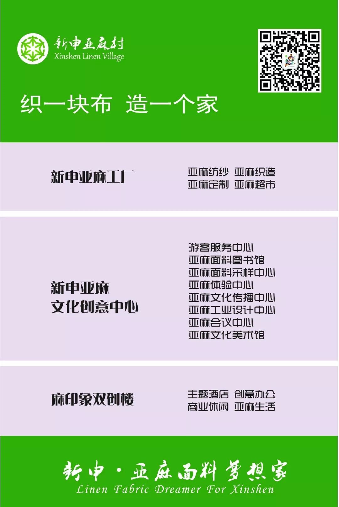 位于中國(guó)絲綢小鎮(zhèn)-震澤的新申亞麻村,亞麻全產(chǎn)業(yè)鏈不僅有一線亞麻紡紗廠、織造廠,更延伸到文化創(chuàng)意、場(chǎng)景體驗(yàn)、創(chuàng)客空間、主題酒店、線下零售等等,可以說(shuō)是一個(gè)亞麻生態(tài)系統(tǒng),更直觀、更豐富、更全面的亞麻面料體驗(yàn)就在這里。