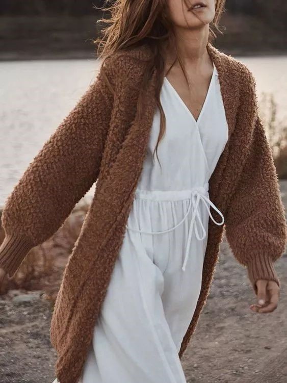 再冷一點(diǎn),換上長針織開衫,既能抵御初秋的微涼,又可以輕松搭配亞麻裙,選對款式,修身顯瘦絕對是一把好手。