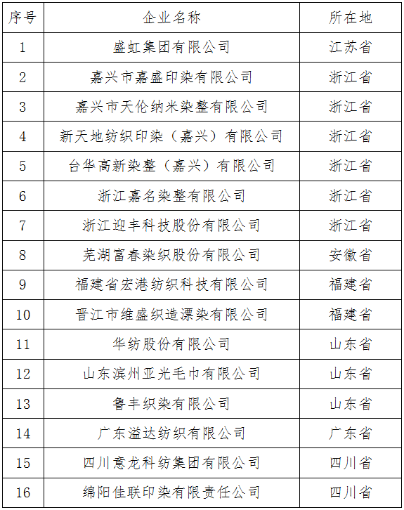 經(jīng)企業(yè)自主申報、省級工業(yè)主管部門核實推薦、專家組復(fù)核及現(xiàn)場走訪、征求生態(tài)環(huán)境部意見、網(wǎng)上公示等程序,現(xiàn)將符合《印染行業(yè)規(guī)范條件(2017版)》企業(yè)名單(第二批)予以公告。