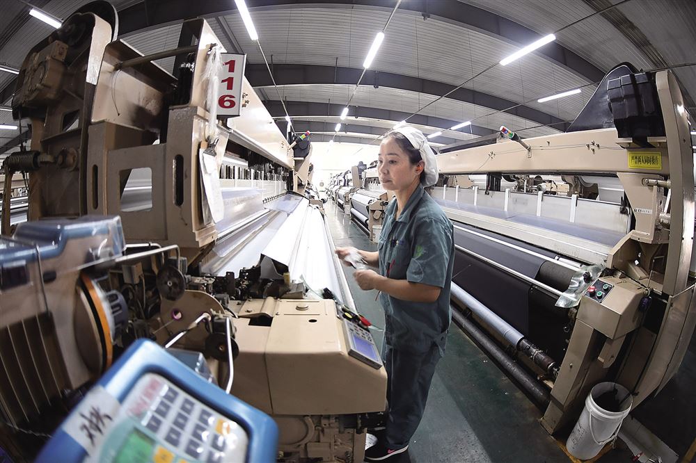 恒力化纖織造車間已和傳統(tǒng)紡織企業(yè)車間有很大差別,一臺臺智能化紡織機(jī)器讓工人們告別繁重的體力勞動,使作業(yè)效率和紡織精度得到有效提升。