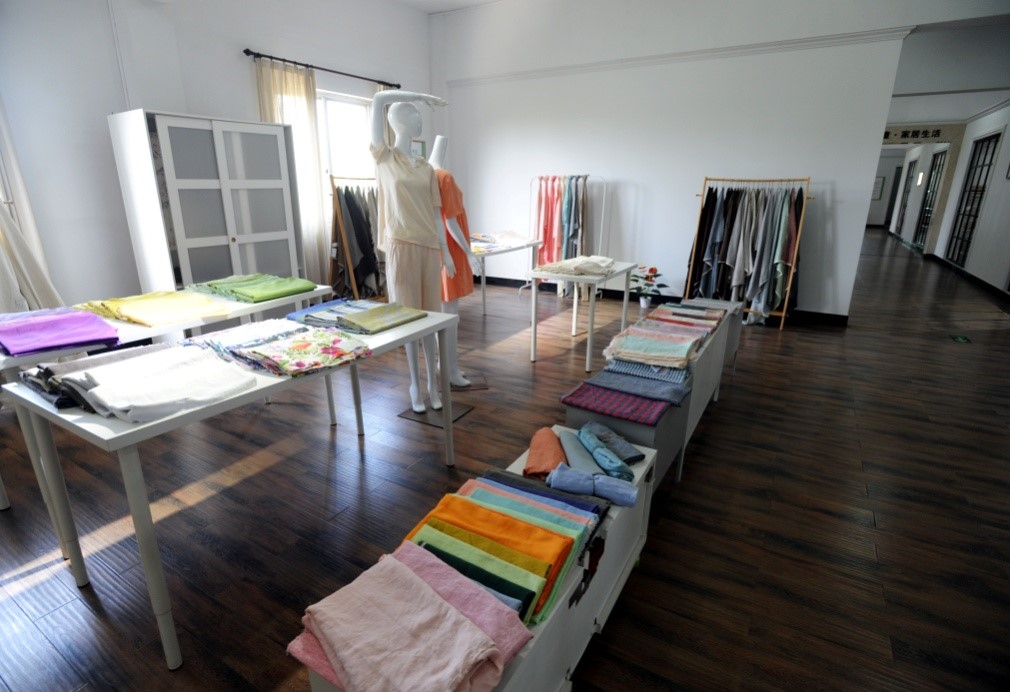 這里的年輕人,可能沒有資金、沒有場(chǎng)地,但是有激情、有能力、有想法。他們以最大優(yōu)惠享受新申提供的辦公場(chǎng)地、展示場(chǎng)地、服裝設(shè)計(jì)、打樣資源,還有免費(fèi)注冊(cè)商標(biāo)、專業(yè)指導(dǎo)、展會(huì)展示機(jī)會(huì)。反過來,他們自主經(jīng)營(yíng)亞麻品牌,帶動(dòng)面料銷售,也能為來訪客戶提供成品定制服務(wù),提高客戶體驗(yàn)??梢哉f,新申與創(chuàng)客,是相互培養(yǎng)、相互促進(jìn)的共創(chuàng)關(guān)系。