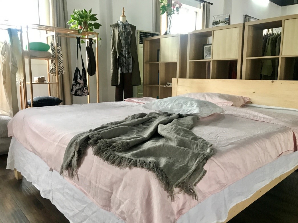 為此,新申將廠區(qū)舊廠房改造翻新,提供辦公場(chǎng)地、新品展廳、服裝設(shè)計(jì)、打樣等一條龍服務(wù)。升級(jí)打造麻印象主題酒店,為入駐創(chuàng)客提供休息場(chǎng)地。創(chuàng)客帶動(dòng)亞麻銷量,實(shí)現(xiàn)1+1>2。