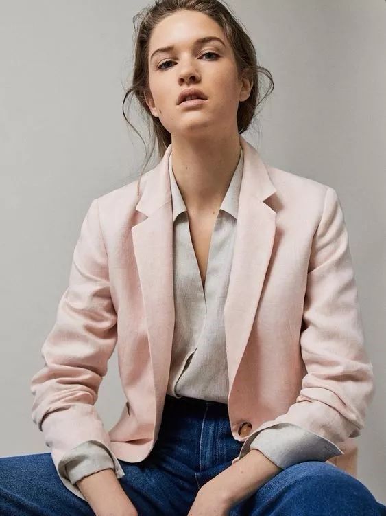 柔軟湛藍(lán)的牛仔褲,與質(zhì)感有型的亞麻西裝搭配,更加休閑日常,更有活力感,要多流行就有多流行。