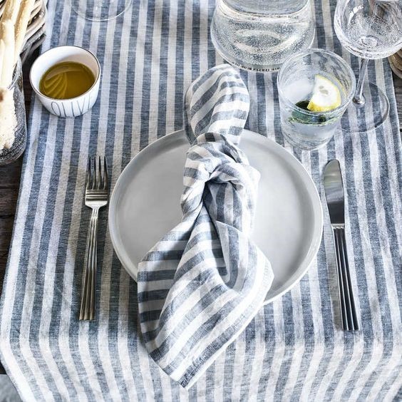 條紋裝飾的原則,在于“繁簡(jiǎn)搭配”。條紋亞麻桌布,整潔的線條,搭配藍(lán)、白、灰、粉等低飽和度的色彩,最好搭配純白極簡(jiǎn)的瓷制餐具。晚上回家后,烹飪幾道平凡料理,鋪上這塊亞麻桌布,和愛(ài)人共進(jìn)晚餐,給你的心靈最大平和放松。
