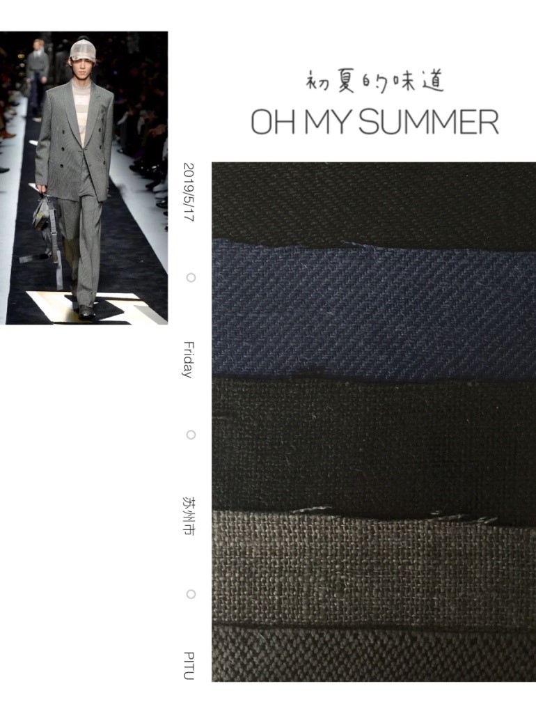 在顏色選擇上,不同于春夏明媚的淺色系,秋冬推薦黑、灰、棕、藍(lán)等深色系面料,與秋冬單品更易穿搭。如果嫌正裝太過嚴(yán)肅,不妨嘗試條紋亞麻面料,平紋斜紋最經(jīng)典,魚骨紋和千鳥格更有一種英倫復(fù)古的貴氣。