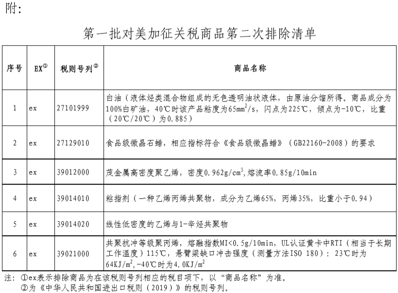 附件:第一批對美加征關(guān)稅商品第二次排除清單