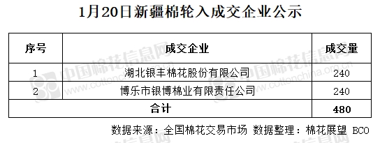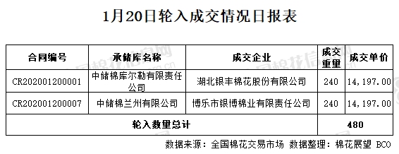 1月20日,中國儲備棉管理有限公司計(jì)劃采購新疆棉7000噸,實(shí)際成交480噸,成交率6.86%,成交均價(jià)14197元/噸。 其中新疆庫成交240噸,內(nèi)地庫成交240噸。
