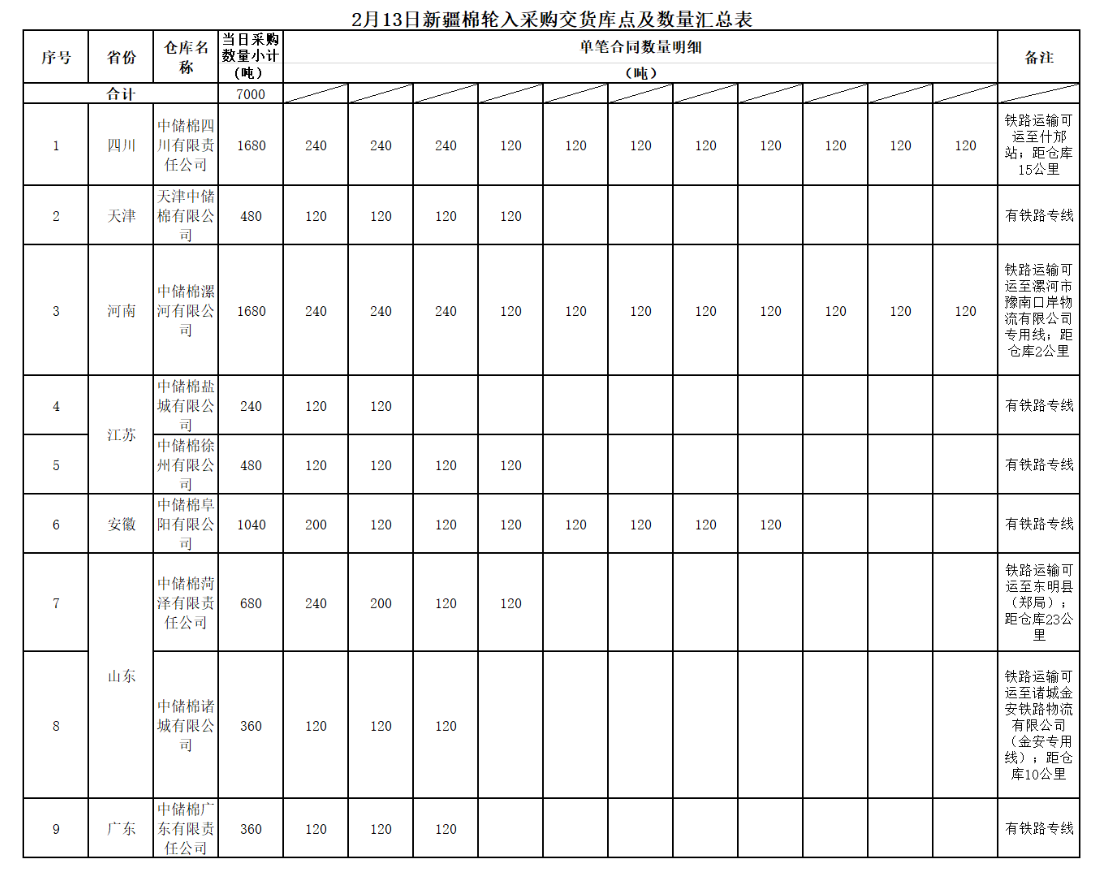 中國(guó)儲(chǔ)備棉管理有限公司定于2020年2月13日采購(gòu)新疆棉7000噸(公定重量),最高限價(jià)14135元/噸(折標(biāo)準(zhǔn)級(jí)3128B價(jià)格)。具體庫(kù)點(diǎn)及數(shù)量如下: