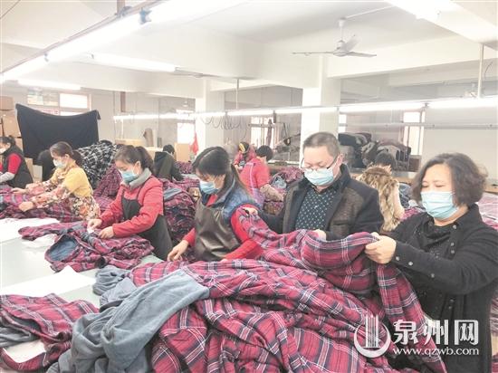 位于石獅市鳳里街道后花社區(qū)的坤泰服裝有限公司,其生產(chǎn)線于2月14日已開工生產(chǎn)。在企業(yè)生產(chǎn)車間里,60多個工人緊張有序地忙碌著。企業(yè)目前有7個2019年存單未發(fā)貨,共有40萬套衣服、貨值近2000萬元,將分別銷往南美、非洲、歐洲市場。