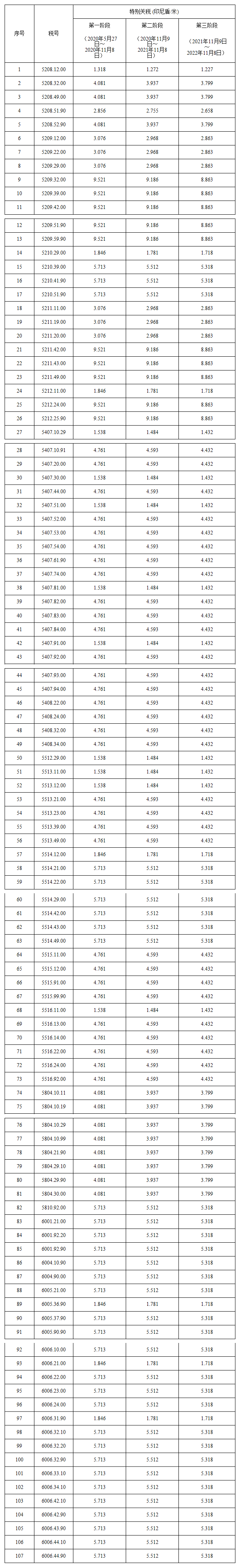 2020年3月3日,WTO保障措施委員會發(fā)布印尼代表團于2月28日向其提交的保障措施通報。印尼調(diào)查機關(guān)對進口織物(Fabrics)作出保障措施終裁,建議對進口織物自2020年5月27日至2022年11月8日以特別關(guān)稅形式實施保障措施(詳見下表)。