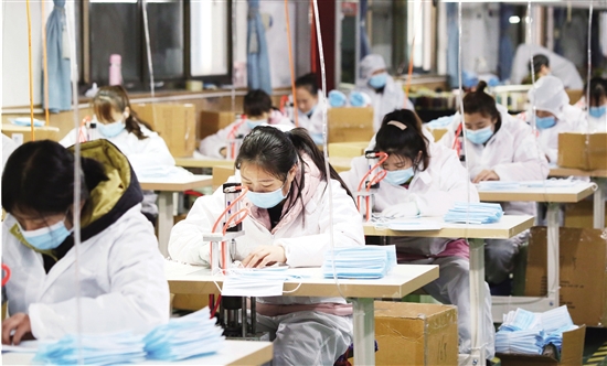 昨日,在位于錢清的浙江金蟬布藝股份有限公司內,新上馬的兩條口罩生產線正在源源不斷產出口罩。據(jù)了解,除“金蟬布藝”,我區(qū)的“吉麻良絲”、“富路特家紡”、“云博紡織”等6家企業(yè)紛紛開設口罩生產線,日產能近200萬只。