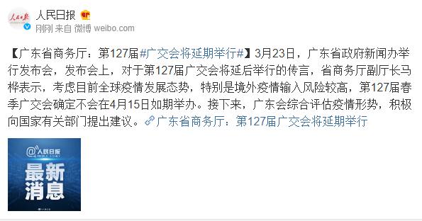 廣交會(huì)是中國(guó)對(duì)外貿(mào)易和對(duì)外開(kāi)放的重要平臺(tái),素有中國(guó)外貿(mào)“晴雨表”美譽(yù)。3月23日,廣東省政府新聞辦舉行發(fā)布會(huì),通報(bào)廣東省新冠肺炎疫情和防控工作情況。
