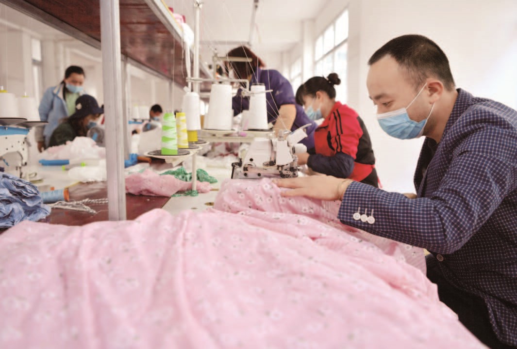 4月15日,在湖北省宣恩縣珠山鎮(zhèn)甘溪易地扶貧搬遷安置點一間只有30多名員工的“微工廠”,工人正在加工一批銷往馬來西亞的裙子。近日,湖北省恩施土家族苗族自治州宣恩縣易地扶貧搬遷安置點上的“微工廠”陸續(xù)復工復產。其中一部分“微工廠”結合自身特點,多方聯(lián)系符合自身生產能力的海外“小訂單”,帶動安置點及周邊農民拓展國際市場增收致富。