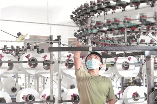 4月以來,紡織服裝重鎮(zhèn)石獅市各企業(yè)復(fù)工復(fù)產(chǎn)順利推進,180家規(guī)模以上紡織服裝企業(yè)復(fù)工,復(fù)工率超過96%。有條件的企業(yè)通過設(shè)備改造等措施,增加衛(wèi)生防護用品的生產(chǎn),提高對市場的應(yīng)變能力。圖為19日,在福建石獅新遠(yuǎn)輝化纖紡織公司,工人在維護生產(chǎn)設(shè)備。