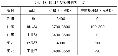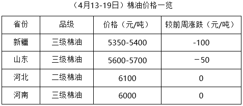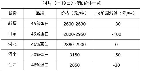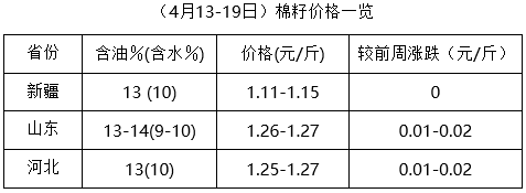 上周(4月13-19日),棉籽資源量進(jìn)一步減少,價(jià)格高位上漲,其他棉副產(chǎn)品多處弱勢(shì),支撐力度不佳,油棉廠經(jīng)營(yíng)困頓,內(nèi)地個(gè)別油棉廠斷續(xù)開工以應(yīng)對(duì)市場(chǎng)變化。