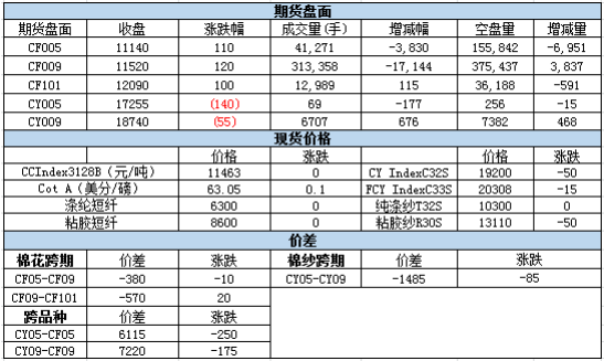 棉紗期現(xiàn)價差縮小,建議觀望。