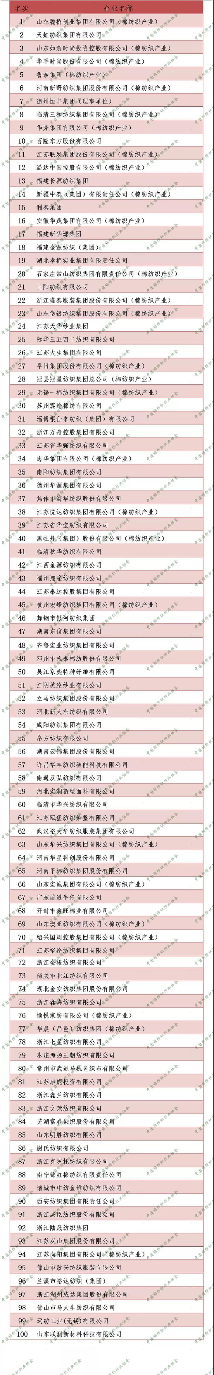 “棉聯(lián)”2019年棉紡織行業(yè)營業(yè)收入排名名單
