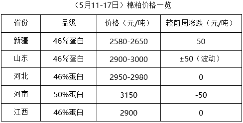 上周,期貨豆粕震蕩下行,現(xiàn)貨相應調整。周末沿海地區(qū)43%蛋白豆粕價至2600-2710元/噸,較前周下跌100-150元/噸,拖累棉粕市場。目前46%蛋白棉粕價格已超過豆粕,性價比無優(yōu)勢,加之下游養(yǎng)殖業(yè)恢復較慢,棉粕需求受到限制。5-7月進口大豆到港量較大,大豆壓榨量將逐步提高,豆粕出貨壓力增加,打壓棉粕行情,個別廠家降價出貨。但目前棉籽貨少價高,油棉廠經營虧損,加之各地開工率不高,廠家仍有挺價意愿,抑制棉粕降價幅度,局部漲跌互現(xiàn)。離新棉籽上市時間較長,未來棉粕在參照豆粕走勢下,震蕩調整行情持續(xù)運行。