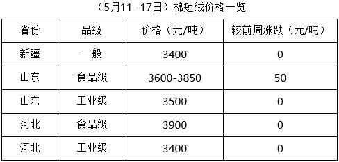 上周,棉籽量少價高,個別油棉廠停收避險,棉短絨產出量有限,加之成本支撐,貨少廠家提價出貨,棉短絨止跌反彈。但因下游化纖廠、精制棉廠開工率有限,棉短絨采購量不大,制約棉短絨行情,多數(shù)地區(qū)棉短絨報價穩(wěn)定,購銷不溫不火。距離新絨上市時間較長,預計下周棉短絨在購銷拉鋸中保持震蕩調整格局運行。