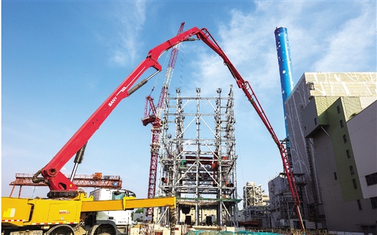 濱海熱電三期擴(kuò)建工程建設(shè)現(xiàn)場(chǎng)。