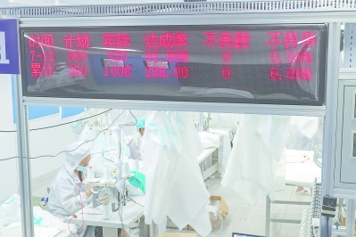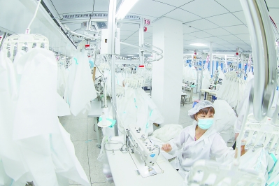 漳州拓奇實(shí)業(yè)有限公司防護(hù)服生產(chǎn)流水線一角。