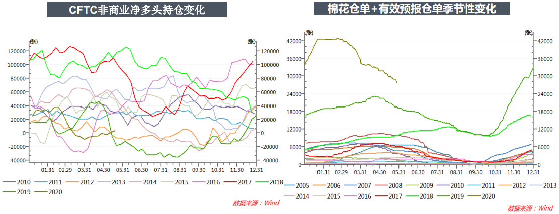 從長(zhǎng)周期角度看,目前鄭棉已很有吸引力,且國(guó)內(nèi)連續(xù)幾年降庫(kù)存也給市場(chǎng)一定支撐,從價(jià)值投資角度可以考慮等待入場(chǎng)。需求方面,目前出口數(shù)據(jù)仍差,國(guó)內(nèi)消費(fèi)4月數(shù)據(jù)開(kāi)始好轉(zhuǎn),預(yù)計(jì)5月數(shù)據(jù)將繼續(xù)好轉(zhuǎn),但整體消費(fèi)雖在逐步恢復(fù),但仍是不如往年同期。從目前下游消費(fèi)看,疫情帶來(lái)消費(fèi)悲觀(guān)影響還會(huì)持續(xù)一段時(shí)間。短期滌綸短纖及粘膠短纖價(jià)格開(kāi)始出現(xiàn)反彈,下游消費(fèi)有好轉(zhuǎn)跡象,但中美關(guān)系可能會(huì)給下游消費(fèi)帶來(lái)新的不確定性。