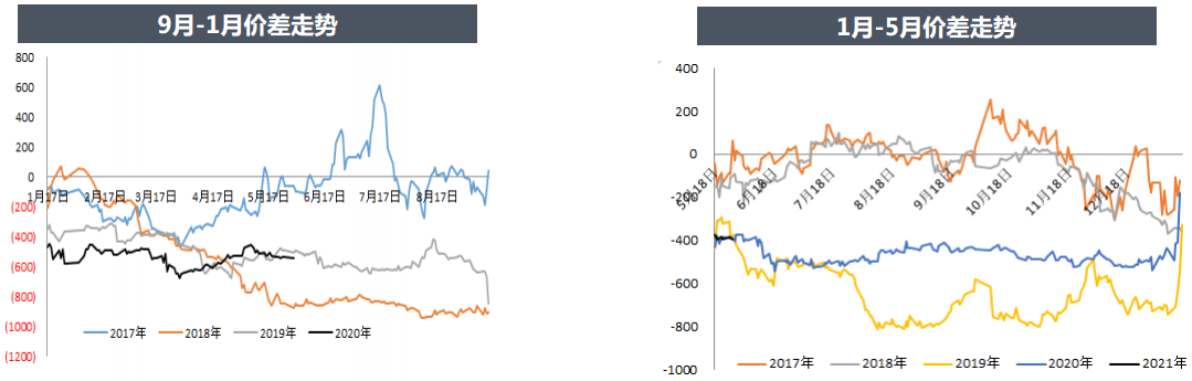 9-1價(jià)差近期持續(xù)回落,但是考慮未來(lái)遠(yuǎn)月疫情影響相對(duì)較小且消費(fèi)可能恢復(fù),因此遠(yuǎn)月的想象空間更大,可以考慮在低點(diǎn)做大價(jià)差。