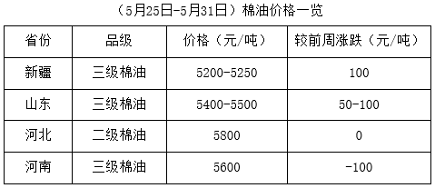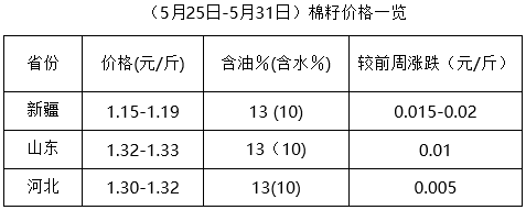 上周(5月25-31日),全國兩會閉幕,中美關系緊張導致大豆進口成本提高,利多油粕行情,加之內(nèi)地麥收工作即將全面展開(6月5日為芒種時間),部分油棉廠有停機計劃,支撐棉副產(chǎn)品報價漲多跌少,市場仍處進一步調(diào)整中。